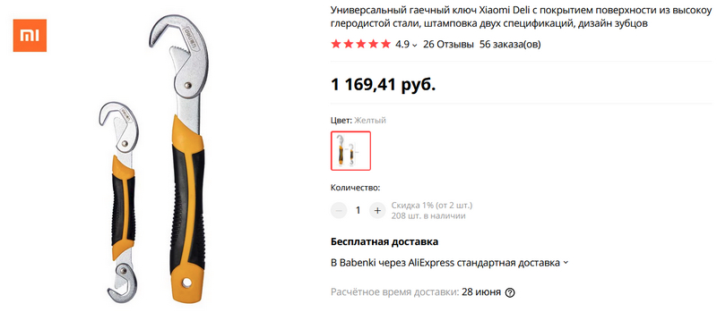 Полезная в домашнем хозяйстве вещь - комплект из двух универсальных гаечных ключей Xiaomi Deli. Высокоуглеродистая сталь, удобная ручка. Несколько раз рекомендовали люди, которые ими пользуются, - хвалили.