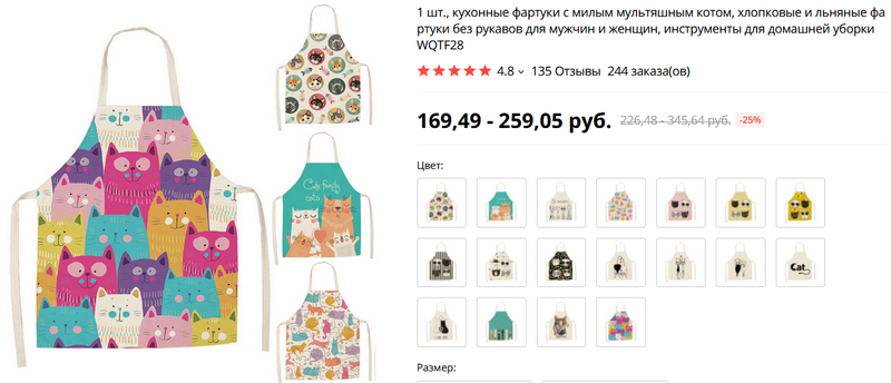 Эти шикарные кухонные фартуки с котиками порекомендовали в комментах, за что рекомендовавшему большое спасибо. Купил себе три штуки с разными принтами. Я кухонные фартуки использую постоянно, причем не только для готовки, но и в качестве защиты во время еды. Ну такой я человек: мне нельзя есть цветную еду без защиты одежды, потому что неминуемо запачкаю майку или шорты. Мои имеющиеся фартуки - какие-то скучные, а теперь будут веселые, с котиками. И кот Бублик одобряет безмерно!