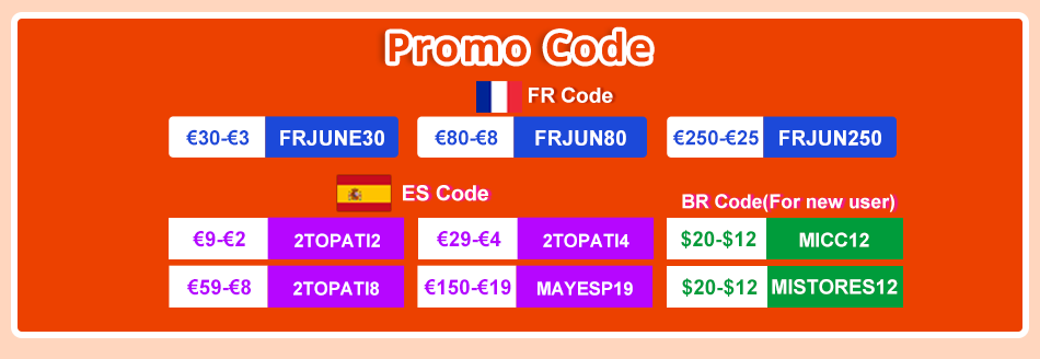 Hi friend, there are some promo code for ES & FR buyers. ES Buyers can use the Code 【MAYESP19】to get €19 off. FR Buyers can use the Code 【FRJUN250】to get €25 off.