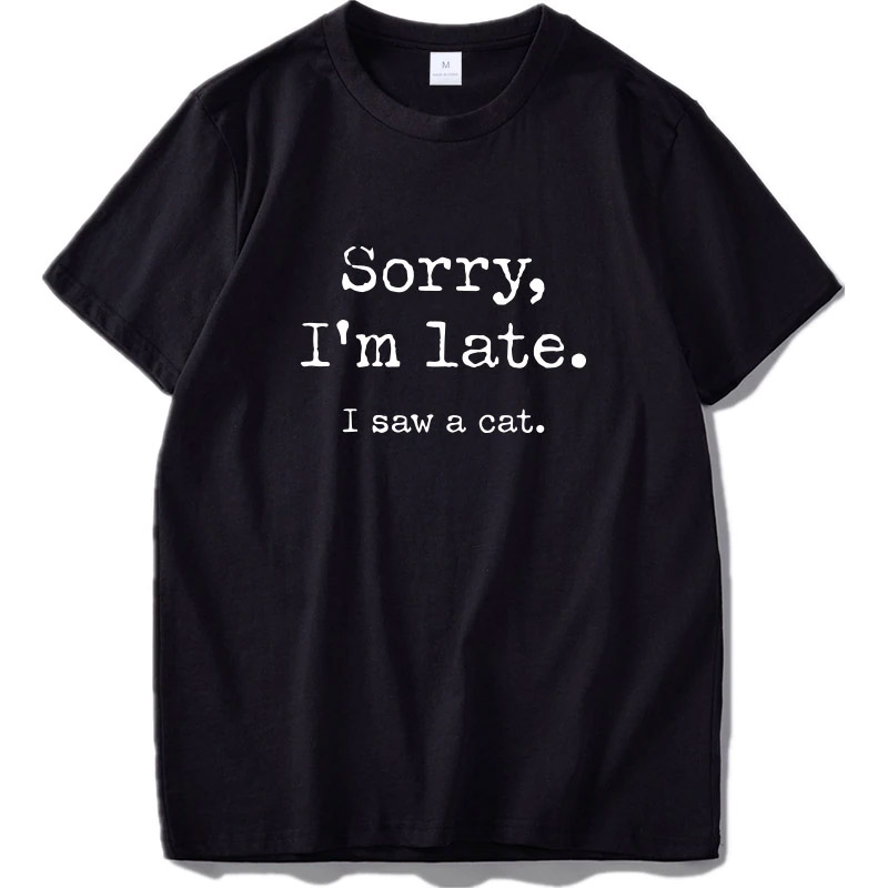 Прикольная хлопковая футболка "Sorry, I'm late. I saw a cat." ?