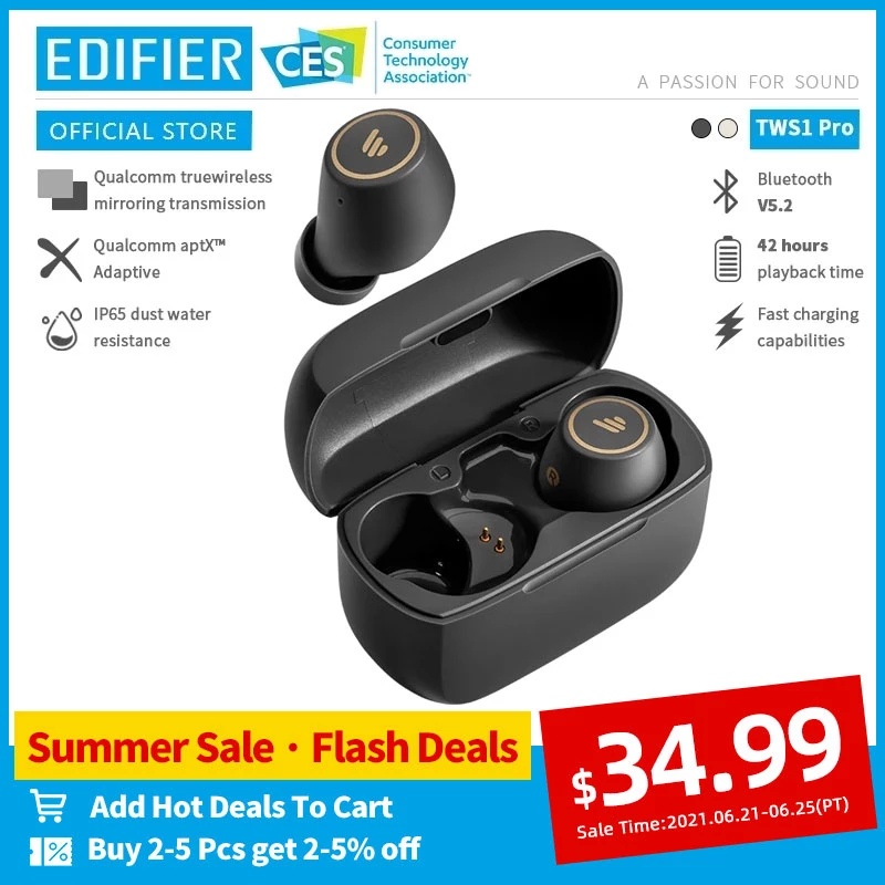 У меня сегодня беспроводные наушники EDIFIER X3. Сразу скажу, я их не покупала, а выиграла в генераторе. Но на распродаже цена на них будет довольно привлекательная. Главным минусом для меня является отсутствие индикации заряда на чехле. В остальном - просто отличнейшие наушники. Звук чистый, громкий, сравнимый с Tronsmartами или Ankerами. Подключаются по AptX. Главное преимущество для меня - время работы - практически полный световой день. Я почти всегда с одним наушником хожу и практически постоянно с включенной аудиокнигой, при этом их реально хватает надольше, чем все предыдущие наушники. Сенсор чувствительный, но срабатывает четко - одно касание - пауза, длинное касание - вызов помощника, двойное касание - следующий/предыдущий трек. При звонке хорошо слышно собеседника и он слышит лучше, чем в тех же Tronsmartах. Сами наушники лёгкие, небольшие, довольно удобные. В общем, стоит обратить внимание.