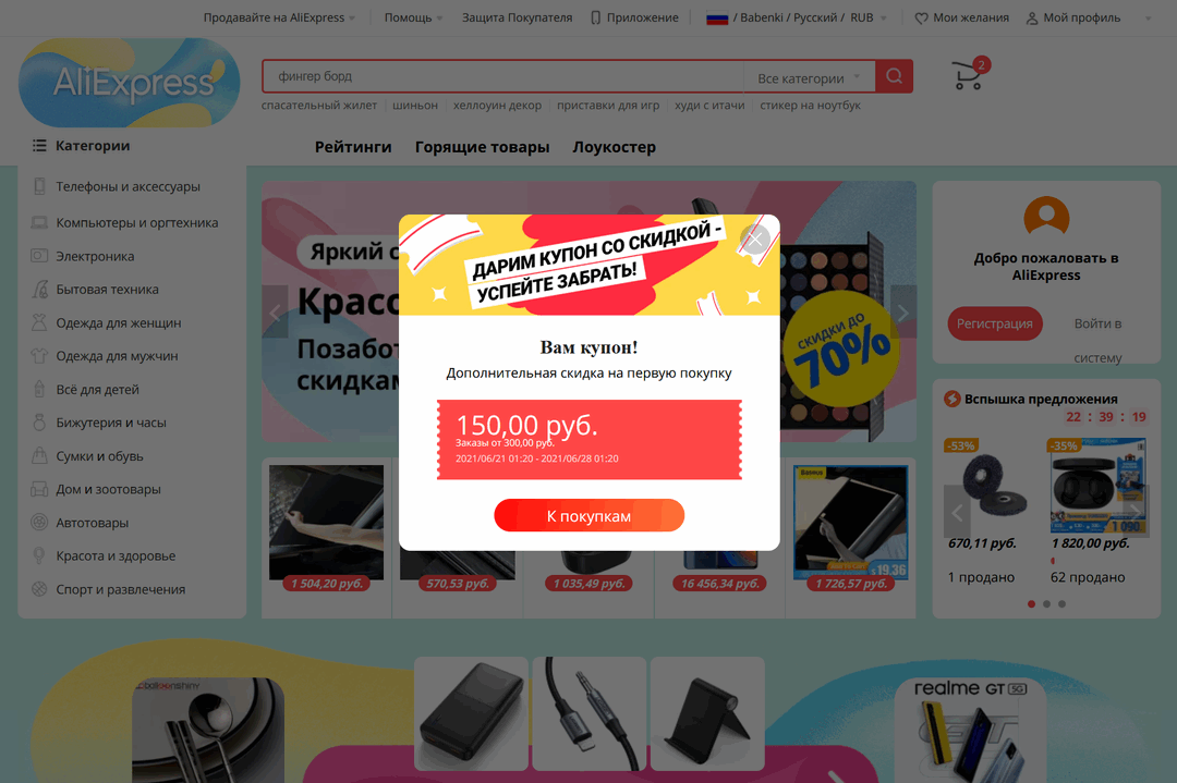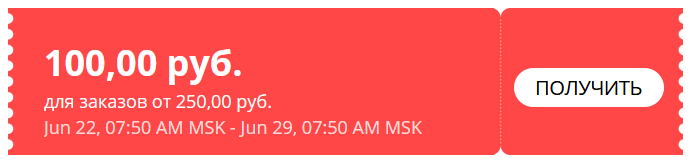 1. Заберите купон на 150₽ на специальной странице, нажав кнопку “Получить”;