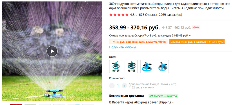 - Купоном продавца (берется на странице с товаром) – 148,96 руб.