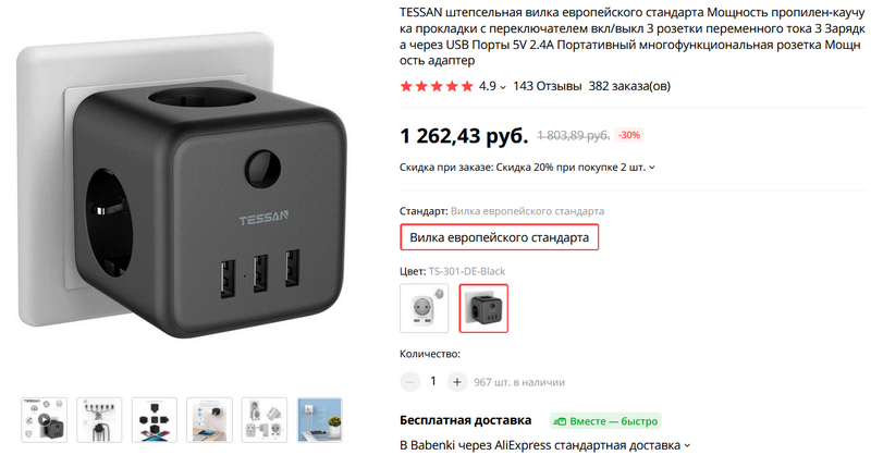 По промокоду GVAD1L5A5W48 скидка – 148,96 руб. (промокод есть на странице удлинителя).