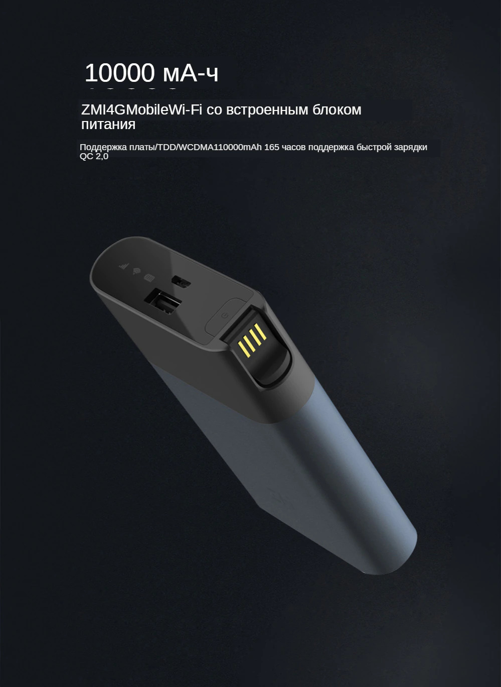 Мобильный и автономный wifi роутер, который даст вам возможность пользоваться интернетом в местах, где есть только мобильная связь. Сам он обладает ёмкостью 10000мАч и имеет двустороннюю QC2.0 зарядку.