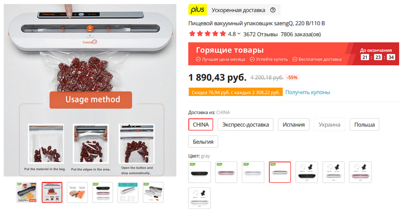 Недорогой вакууматор различных расцветок. Рейтинг очень высокий, отзывы отличные. Вещь в хозяйстве совершенно незаменимая: я когда свой первый вакууматор приобрел, то быстро понял, как неправильно жил до этого.