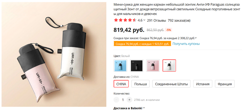 Мне показывает бесплатную доставку из Китая. Правда цена не 40, а 45 евро