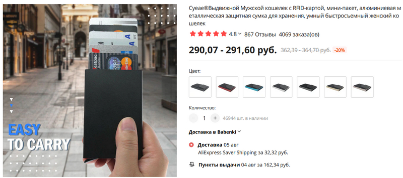 Мужской держатель для пластиковых карт с защитой от сканирования. Самое удобное в нем то, что карты автоматически выдвигаются на разную высоту и, таким образом, можно легко и быстро выбрать нужную. На задней части держателя есть небольшой кошелек, в который можно положить купюры и несколько монет.