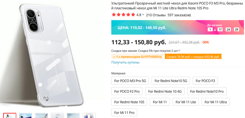 Рекомендовали в комментариях ультратонкий прозрачный чехол для нескольких моделей Xiaomi и Poco. Интересно, я для своего Mi 11 Ultra заказал.