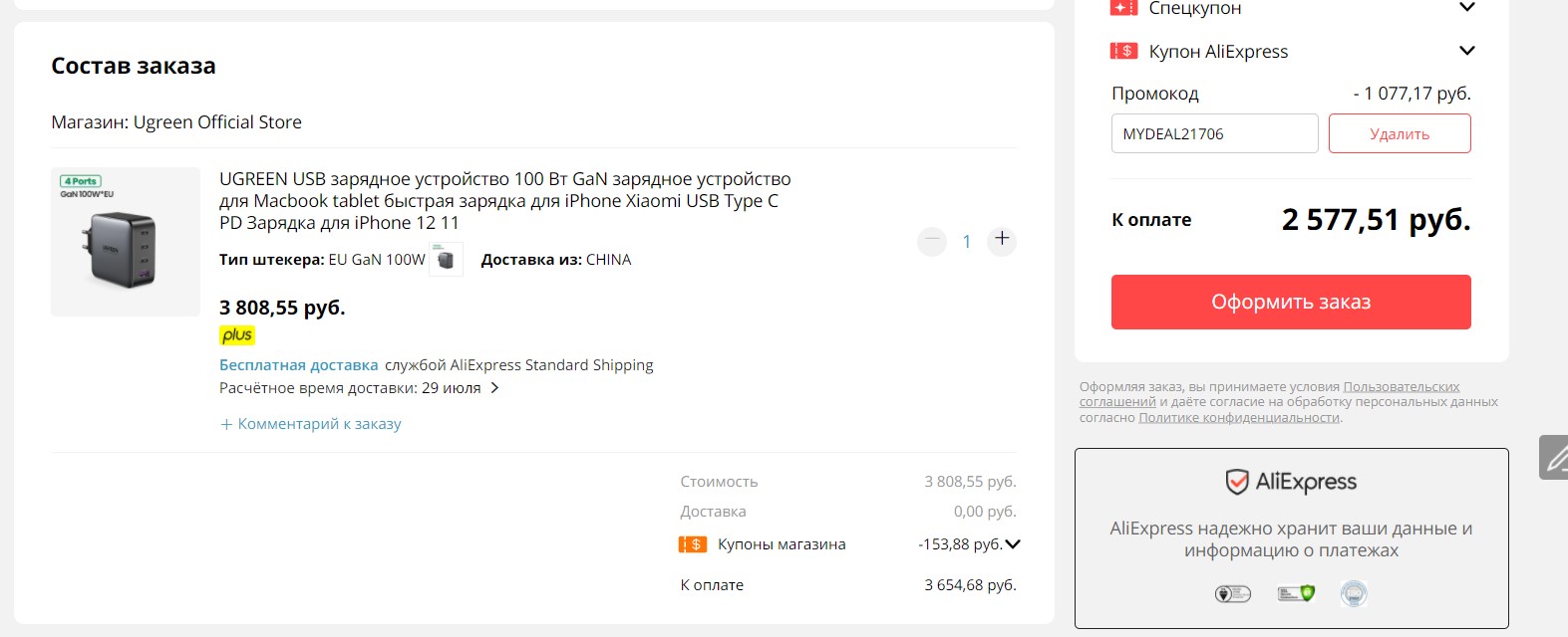 Для начала надо нажать "Получить купоны" и собрать все доступные, затем жмете купить и на странице оформления товара применяете промокод - MYDEAL21706, а купон примениться автоматически.
