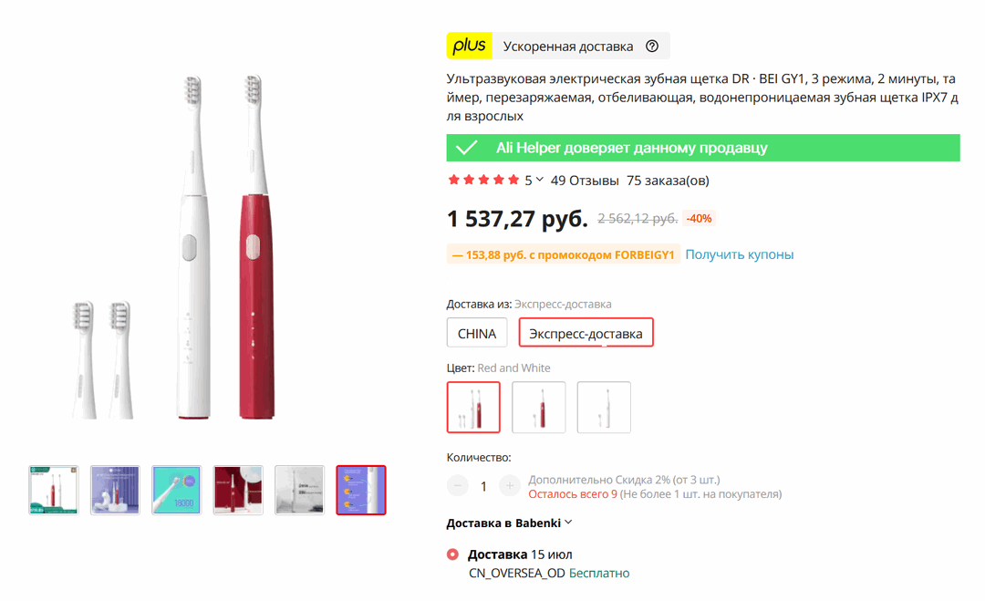 - Купоном продавца (берется на странице с товаром) – 153,88 руб.