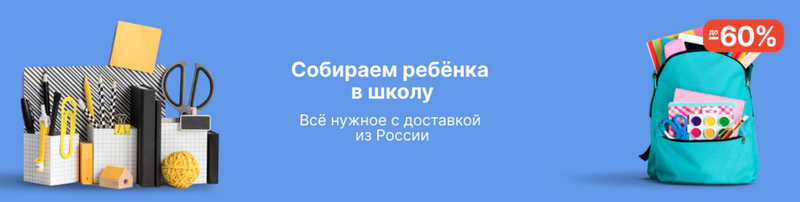 Специализированная распродажа "Собираем ребёнка в школу". Все товары на распродаже - с доставкой из России.