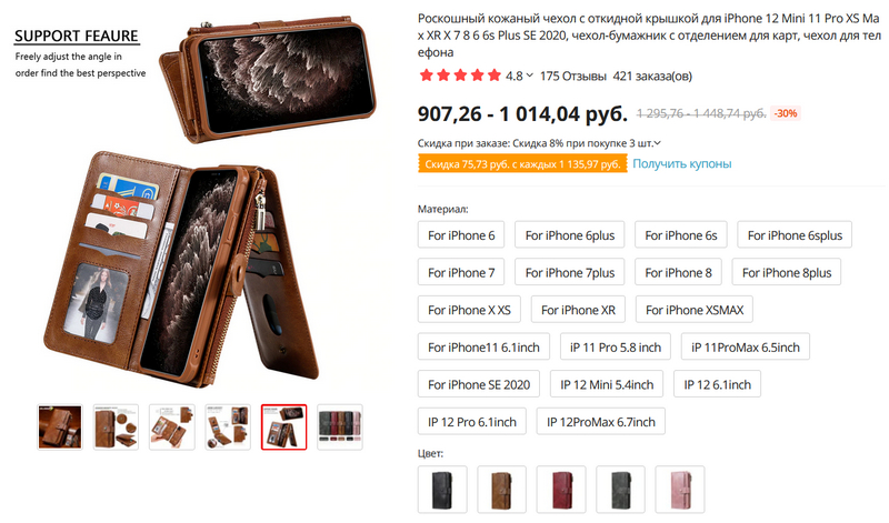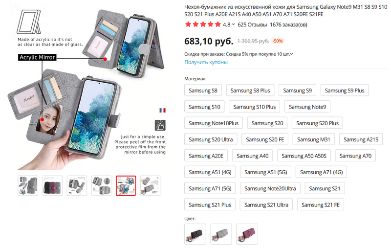 На Aliexpress обнаружили такие чехлы-кошельки (они даже с подставкой для смартфона) хорошего, судя по отзывам, качества - для четырех основных производителей смартфонов.