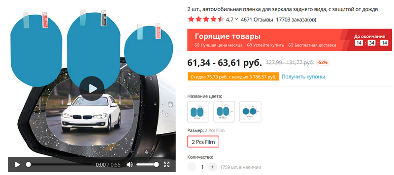 По поводу плёнки на зеркала в машине - разве сейчас не везде ставят электрообогрев? У меня древняя киа рио (даже не знаю, какая комплектация, но точно не топ) и там есть обогрев зеркал (вместе с задним стеклом). Нажал кнопку и достаточно быстро зеркала становятся очень чистыми (от воды/снега и т.п.).