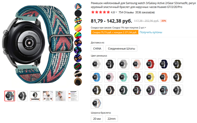 Для любителей цветастых эластичных ремешков для часов - 20 и 22 мм, множество вариантов расцветок.