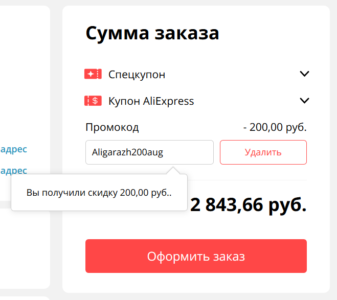 Aligarazh200aug - скидка 200 рублей при заказе от 1600 рублей для всех покупателей (точно работает, проверил сегодня). Действует по 28 сентября.
