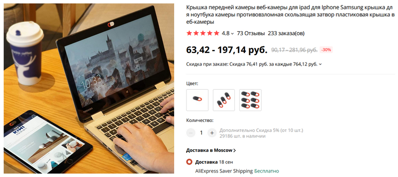 Простенькая, но полезная штука - шторка для камеры ноутбука/планшета. Паранойя паранойей, но известны многочисленные случаи того, когда посторонние получали доступ к камерам ноутбуков/планшетов. Так что, как гласит старая пословица, на Аллаха надейся, а верблюда привязывай.