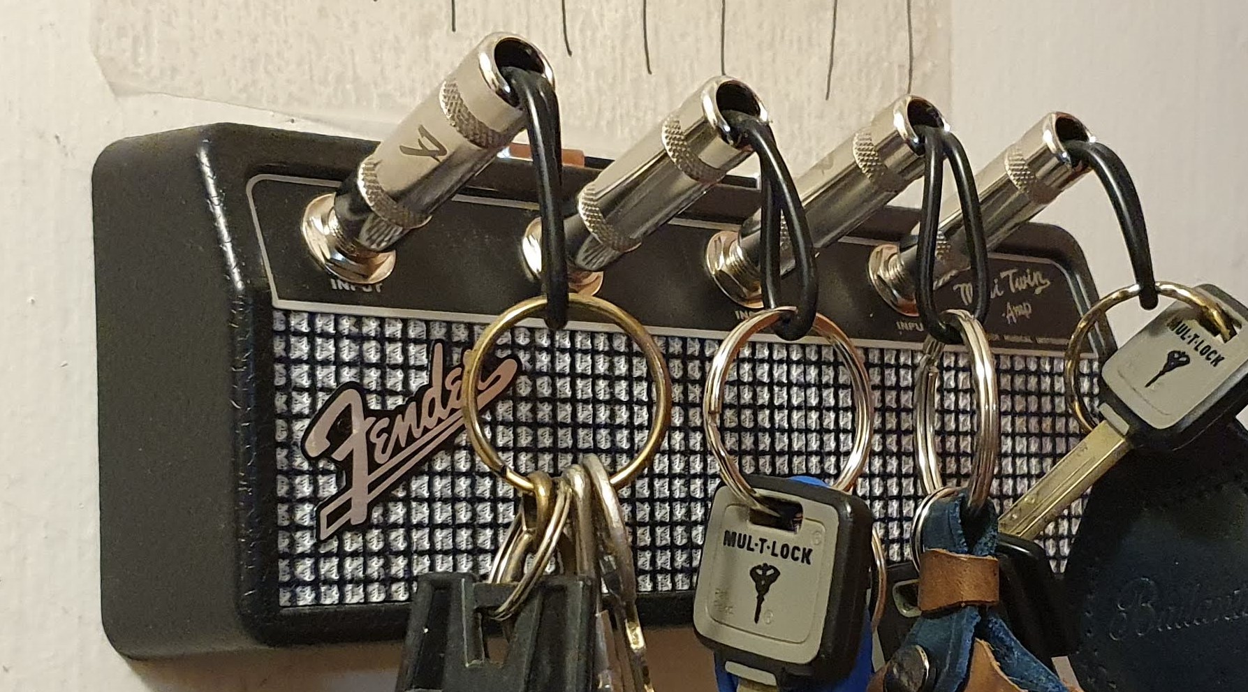 Прикольная вешалка для ключей в виде усилителя Fender, можно еще Marshall найти)