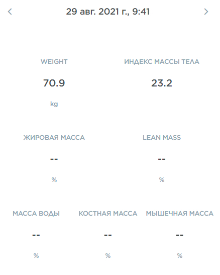 Но есть и минус (ожидаемый). К сети Wi-Fi, как Withings, весы не подключаются, так что запускать измерение нужно из приложения. Если на весах просто взвеситься, не используя приложение, то вы увидите свой вес, но данные в приложении не сохранятся. Это на самом деле не слишком серьезное неудобство: мне не сложно один раз в день запустить приложение и взвеситься.