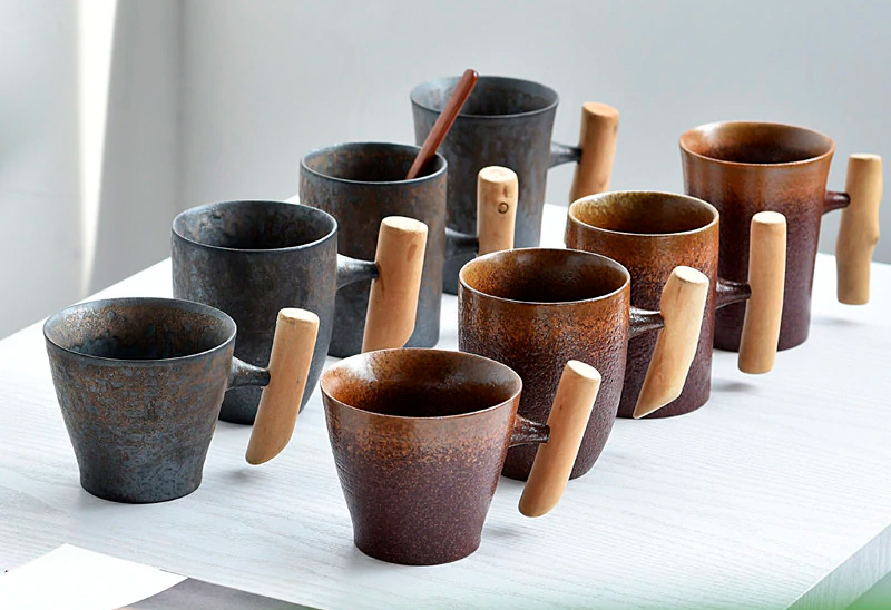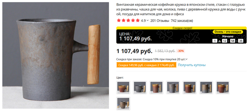 Люблю такое - керамические кружки в винтажном японском стиле. Есть черные под металл, есть коричневые. Я себе заказал как на скриншоте - под металл, да и еще глазурью типа как ржавчину нарисовали - очень колоритно!