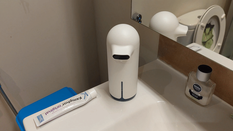 Диспенсер. Похож на пингвина в черных очках - прикольный.