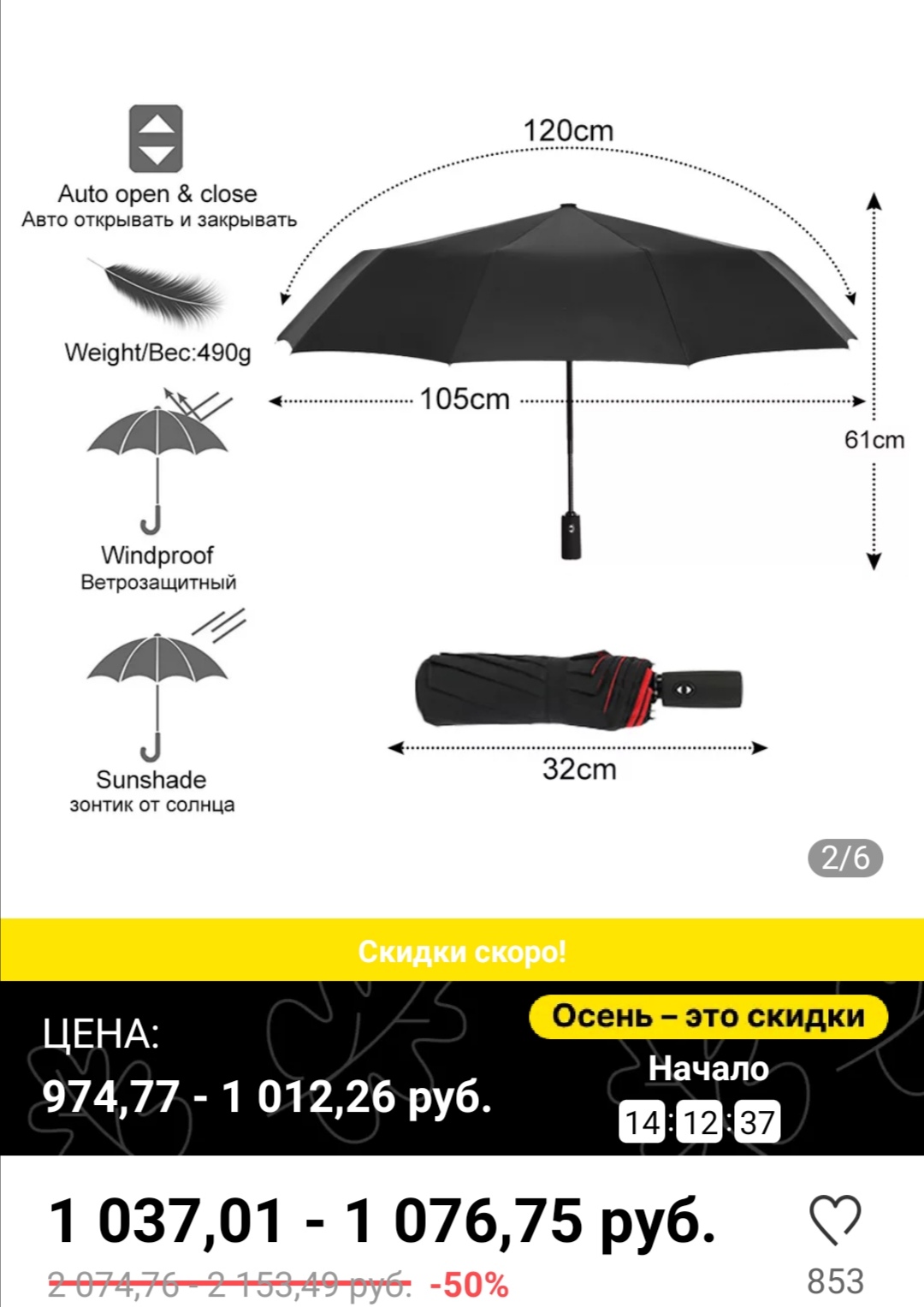 www.aliexpress.com заказывал себе такой... Пока за полгода ношения - только ремешок на рукоятке развязался, зашил ручками... Зато в плане размеров - отлично укрывает двух человек. Я люблю чтобы на меня не капало, так что предпочитаю большие зонты, если нужно покомпактнее и полегче - этот наверное не самый оптимальный