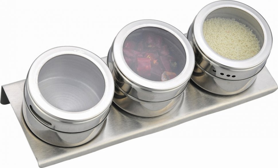 Я думаю, баночки для специй и т.п. кухонных мелочей, на магнитах. Вещь распространенная, есть даже в IKEA