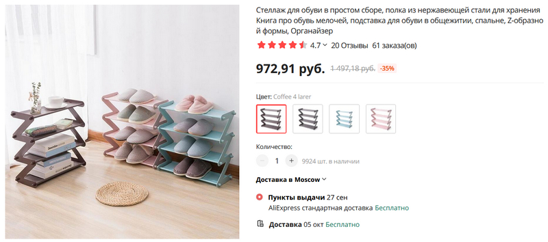 Из разряда полезной бытовухи - многоуровневая металлическая полка. Приезжает в разобранном виде, собирается элементарно. Прежде всего предназначена для организации обуви в коридоре (значительно экономит место), но может использоваться и для хранения каких-то других предметов.