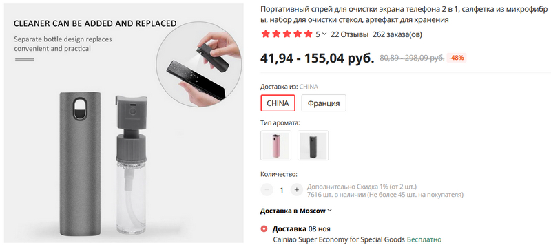Любопытное устройства "2 в 1". С одной стороны, это спрей для очистки экрана смартфона/планшета, с другой стороны, корпус устройства покрыт микрофиброй, которой экран и нужно протереть после брызганья на него из спрея. Одного флакона хватит примерно на 200 протирок. Меня прикололо, я себе заказал.