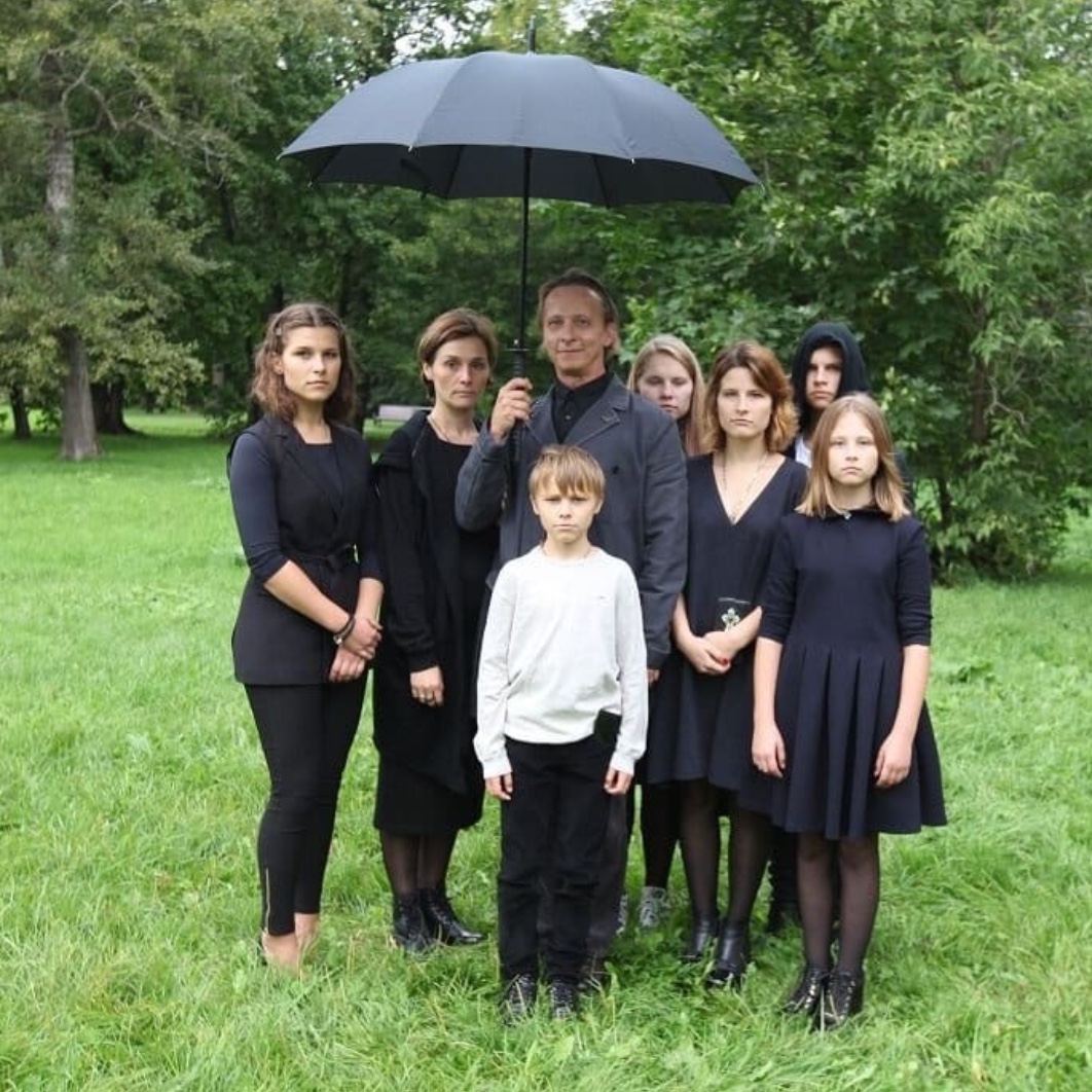 Читатель рекомендовал - большой (130 см) складной ветрозащитный семейный зонт различных цветов. Надежный, защищен от ветра, но при этом достаточно увесистый.