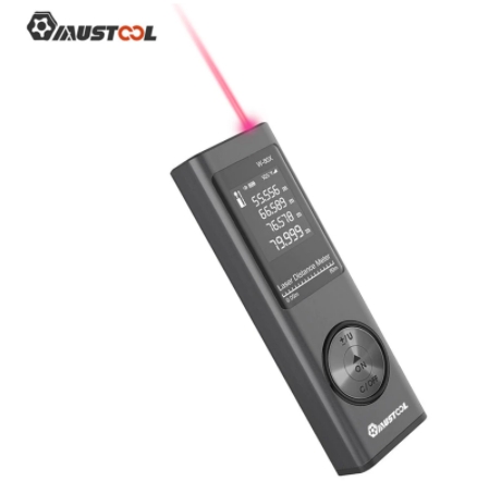 Лазерный дальномер. Отличная замена рулетке. Измеряет довольно точно, имеет несколько режимов измерений. Влагопылезащищённый. Имеется в двух вариантах мощности - до 40 и 80 метров.