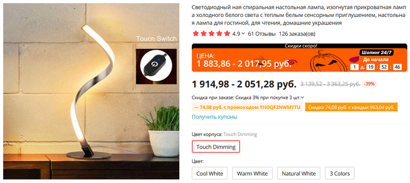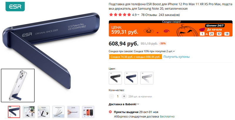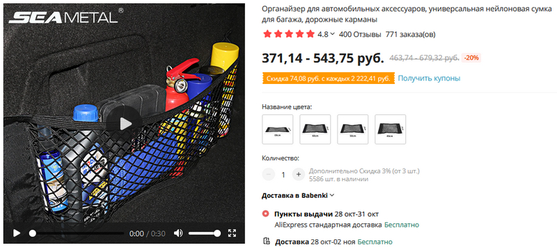 - Купоном продавца (берется на странице с товаром) – 74,08 руб.