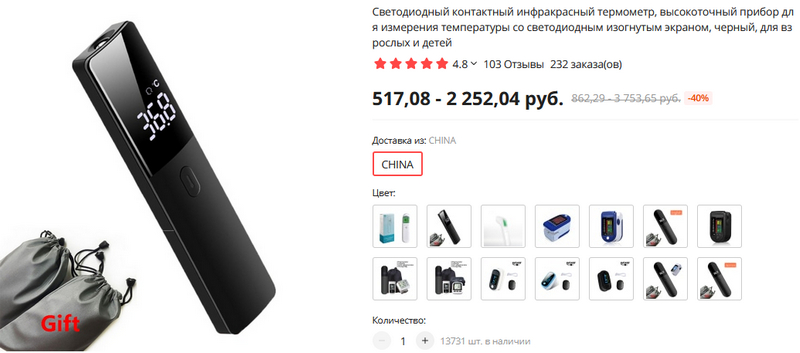 Новый бесконтактный инфракрасный термометр. Там же по отдельности или в комплекте - удобные пульсоксиметры и тонометры двух типов: обычный электрический с отдельной манжетой и с манжетой на запястье.