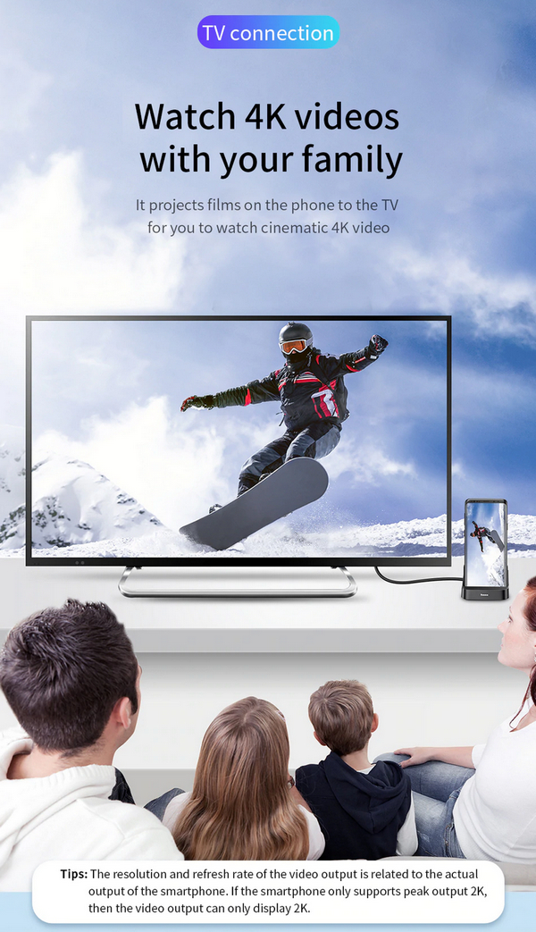 Внимание: проводное подключение через эту док-станцию к мониторам/проекторам доступно только для смартфонов с поддержкой Display Port через USB-C. Их список приведен по ссылке на док-станцию.