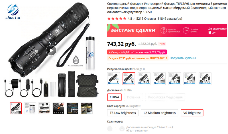 Из рекомендованного - удобный и яркий светодиодный фонарик. Защищен от влаги и от повреждений, пять режимов работы, три модели разной яркости (V6 - самый яркий), куча вариантов комплектации, включая подарочную. Может работать от перезаряжаемого аккумулятора, может от батарей AAA.