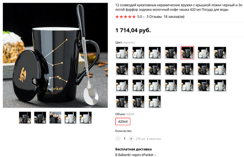 Керамические кружки с крышкой и ложкой - с нужным знаком зодиака. Черные и белые. Черные, на мой взгляд, намного эффектнее. Закажу черную водолейную. Крышка мне ни к чему, а вот эффектная ложечка пригодится - дольку лимона давить.