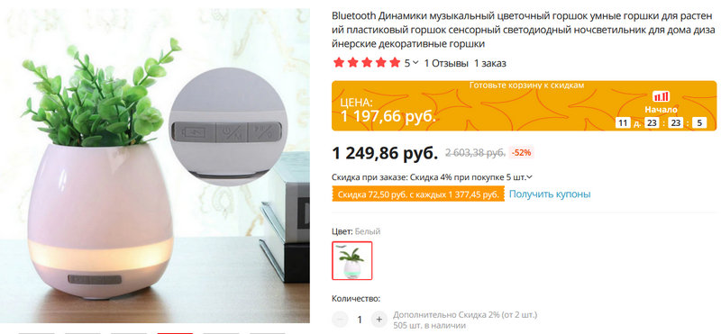 И еще более прикольная беспроводная колонка, сделанная в виде цветочного горшка. У колонки есть подсветка, которая меняется в зависимости от проигрываемой музыки (но можно сделать и постоянную подсветку). Управляется она с помощью кнопок. Также вы можете самостоятельно что-то наигрывать на колонке, прикасаясь к листьям, которые представляют собой нечто вроде клавиш фортепьяно. Забавная штука, короче говоря. От одного заряда работает до 12 часов.