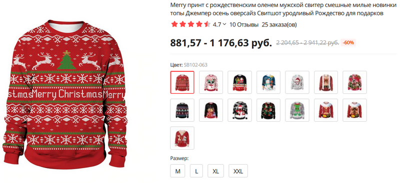 Искал себе свитер с классическим рождественско-новогодним принтом. Женский вариант нашел в момент.
