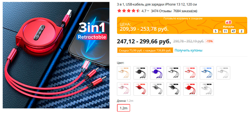 - Купоном продавца (берется на странице с товаром) – 73,99 руб.