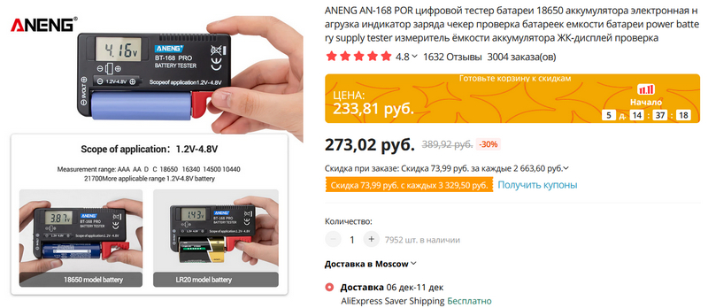 Себе закажу тестер со стрелкой. Обещают за 100 рублей, но с доставкой в НГ.