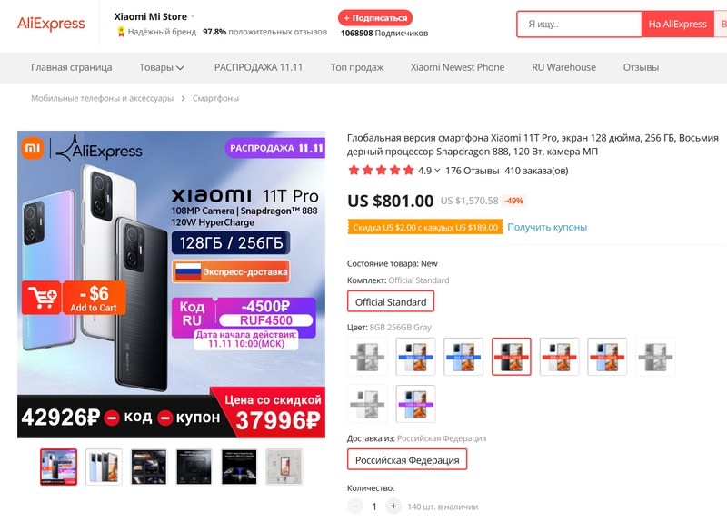 Но как $801 превратились в $649? Даже с крупными купонами. Хм...