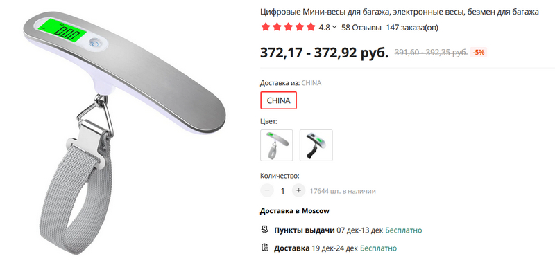 Всегда актуальная штука - безмен для взвешивания сумок/чемоданов. Прежде всего актуально для авиационных перелетов, где важен каждый килограмм и где нужно достаточно точно знать вес багажа, чтобы не попасть на деньги.