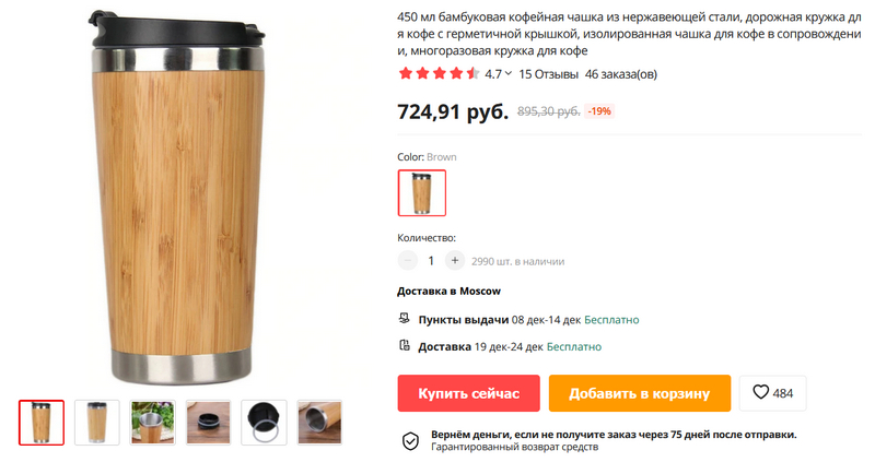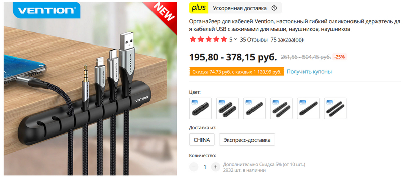 - Купоном продавца (берется на странице с товаром) – 75,03 руб.