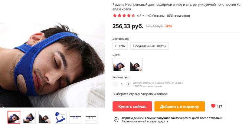 Мне уже попадались ссылки на подобные устройства - ремень против храпа, они много где продаются. Мои друзья покупали сложное устройство за серьезные деньги, говорили, что работает, однако, как я понял, там принцип очень похож на принцип данного копеечного устройства. Я сам храплю по ночам (у меня носовая перегородка перебита), так что мне актуально, если эта штука действительно работает. Я себе заказал, поделюсь впечатлениями, ну и если кто-то будет заказывать, потом напишите, плиз, помогает или нет, создает ли серьезный дискомфорт. Вроде бы дискомфорт создавать не должно, но проверю.