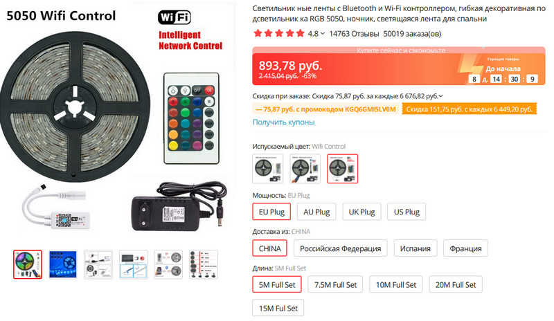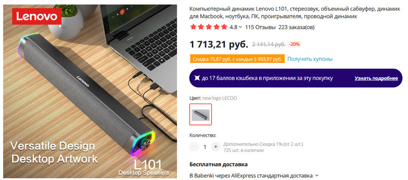 - Купоном продавца (берется на странице с товаром) – 75,87 руб.