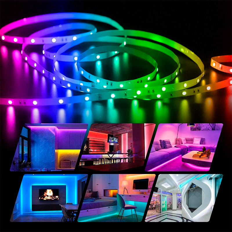 Светодиодная лента для дома. Задавать для нее режимы свечения и расцветку можно с инфракрасного пульта, со смартфона или с пульта, подключающегося по Wi-Fi.