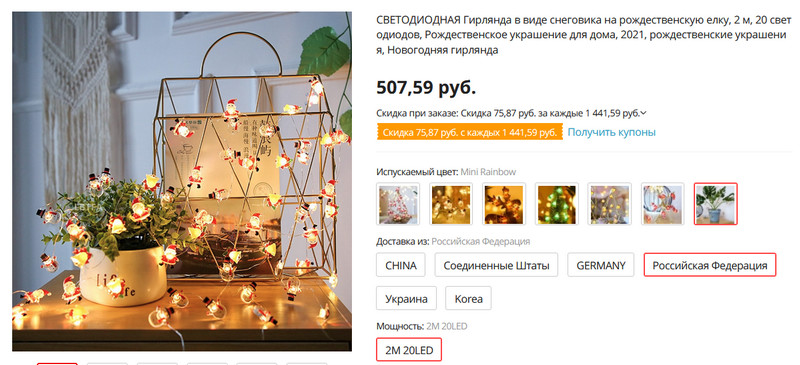 Предновогоднее. Различные светодиодные гирлянды в виде дедов-морозов, снеговичков, елочек, колокольчиков или вееров. Есть доставка из России.