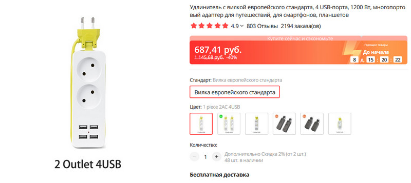 Хорошо придумано: удлинитель с европейской вилкой на две розетки и четыре USB-порта, вокруг которого наматывается провод, скрывающийся в корпусе удлинителя. И пользоваться удобно (можно намотать лишний провод, чтобы не мешался), и хранить удобно. Есть также на одну розетку и четыре порта. Белого и черного цветов.