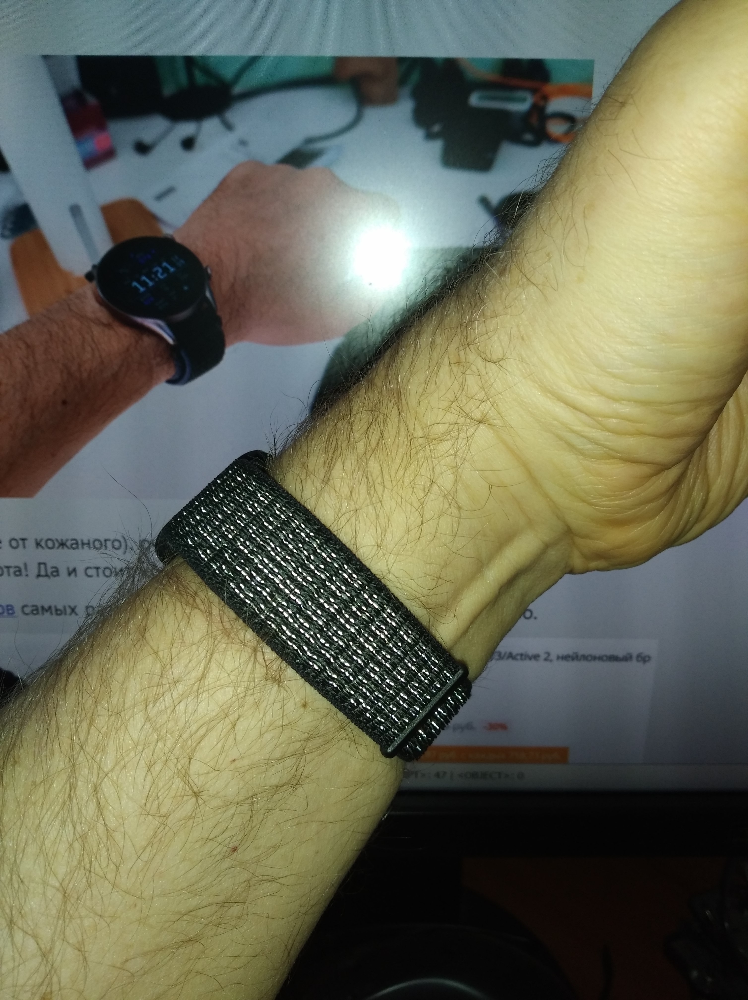 Но тут как-то на пробу заказал нейлоновый плетеный ремешок с застежкой на липучке по типу миланской петли, и очень мне этот вариант понравился, теперь только его и использую.