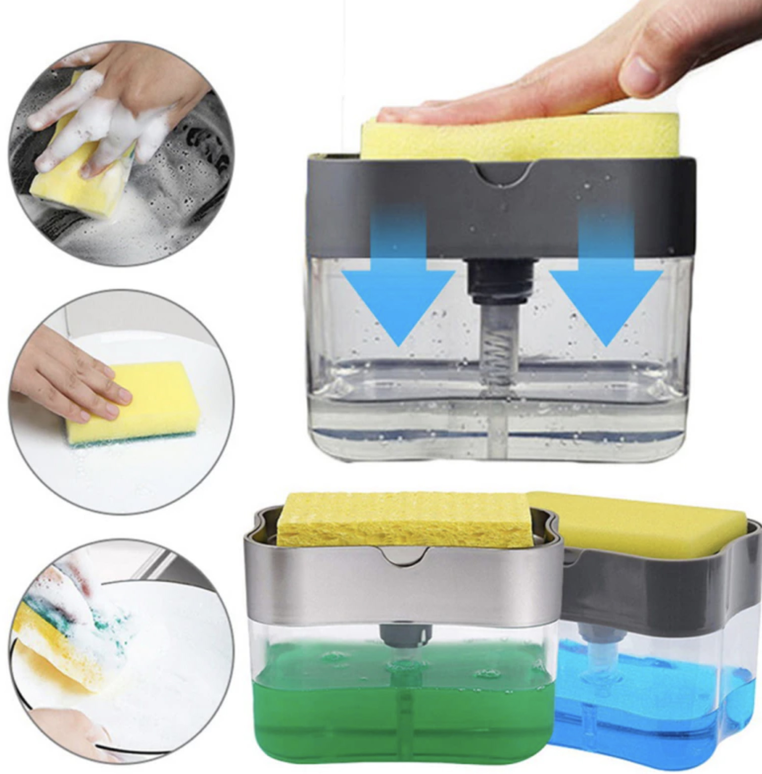 Надоело, что постоянно губка валяется и надо всё время на нее моющее средство наливать. А тут что-то типа диспенсера- заправил моющим средством и пользуйся.